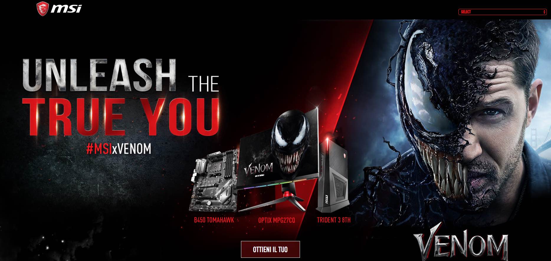 In occasione dell'arrivo dell'enigmatico personaggio di Marvel Comics sul grande schermo, MSI ha collaborato con Sony Pictures per 'Venom', il film diretto da Ruben Fleischer e con protagonista Tom Hardy,