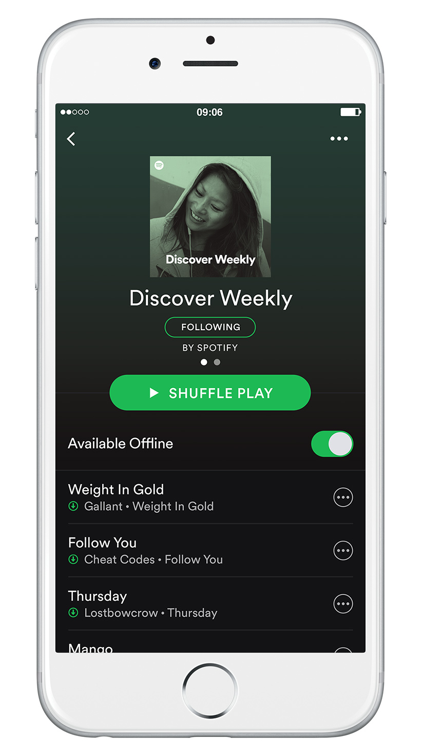 Grazie a oltre 40 milioni di ascoltatori che amano Discover Weekly, quasi 5 miliardi di brani sono stati ascoltati dal lancio (luglio 2015). Aggiornato ogni lunedì mattina, Discover Weekly offre