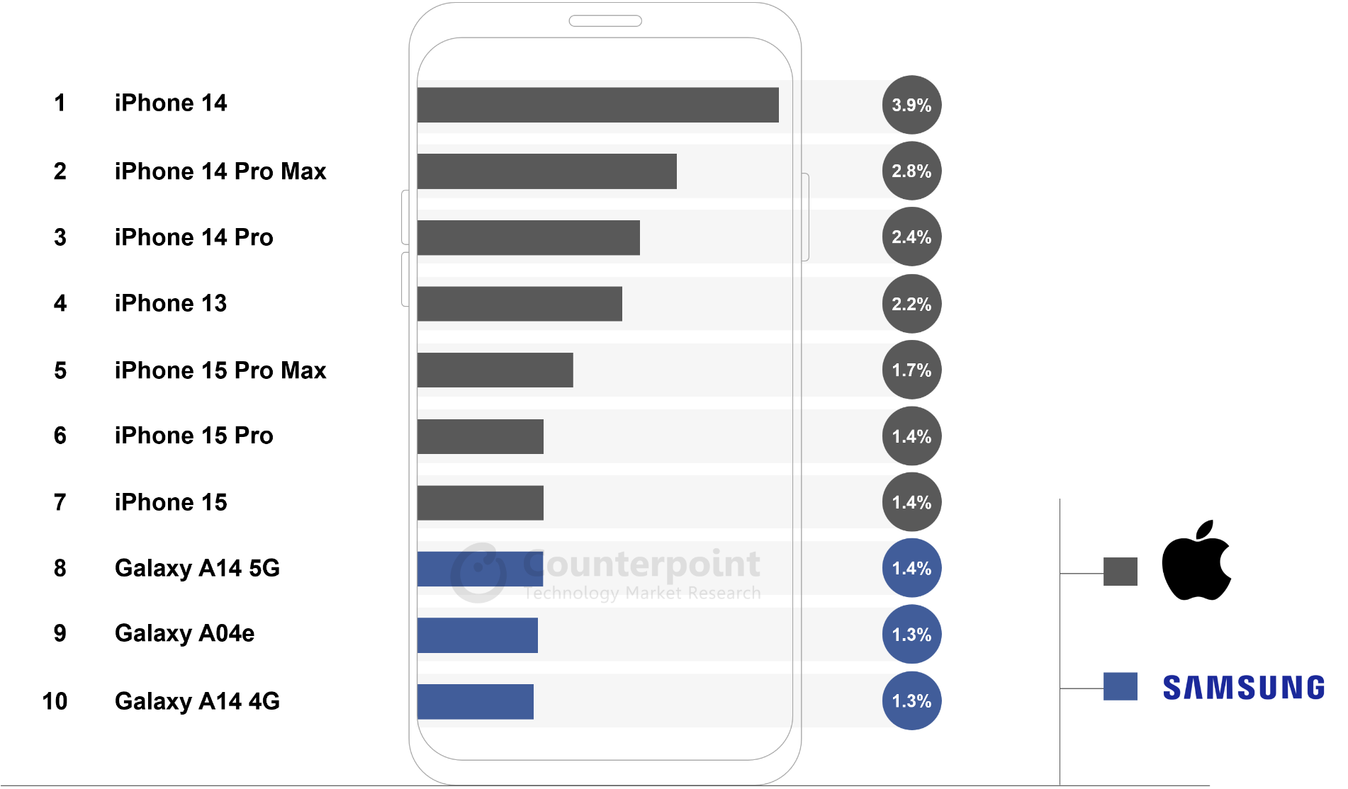 Il 2023 ha segnato un momento epocale nel mondo degli smartphone, con Apple che ha conquistato per la prima volta le prime sette posizioni nella lista globale dei dispositivi più