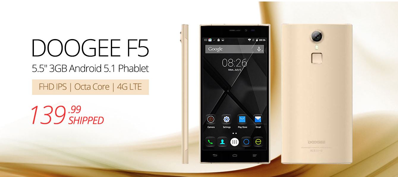 Gearbest propone il nuovo Doogee F5 in pre-vendita a 139.99$, vediamo le specifiche tecniche: Display: 5.5 inch FHD 1920x1080 IPS OGS Screen CPU: MTK6753 64bit Octa Core System: Android 5.1 RAM +