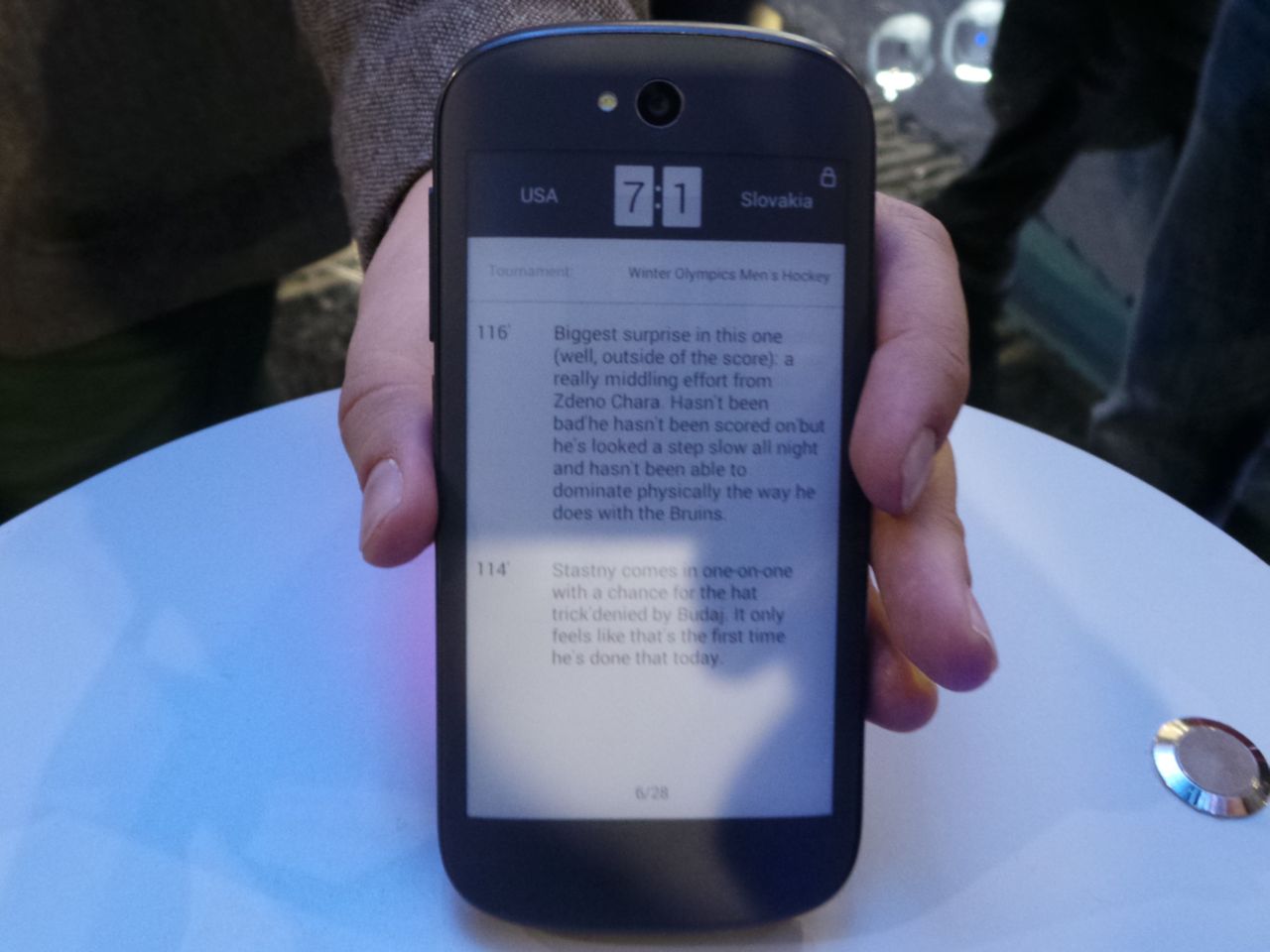 Vi presentiamo ora quello che secondo noi e' il telefono piu' innovativo presentato qui a Barcellona, ovvero il nuovo Yota Phone di seconda generazione Per chi non lo conoscesse, Yota