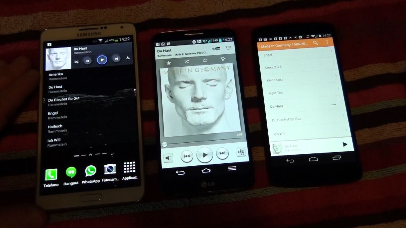 Prima di passarlo a Lucio x il suo probante stress test ne ho approfittato per paragonarlo, inseme al "cugino" LG G2, all'HTC One, qui le differenze sul volume si evidenziano