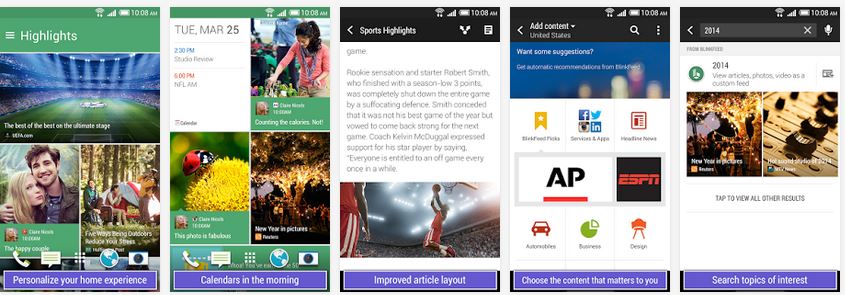L'applicazione HTC BlinkFeed è ora disponibile nel Play Store: https://play.google.com/store/apps/details?id=com.htc.launcher, al momento non risulta compatibile con nessuno dei miei device, fatemi sapere. È ora possibile ricevere tutti i feed social, eventi