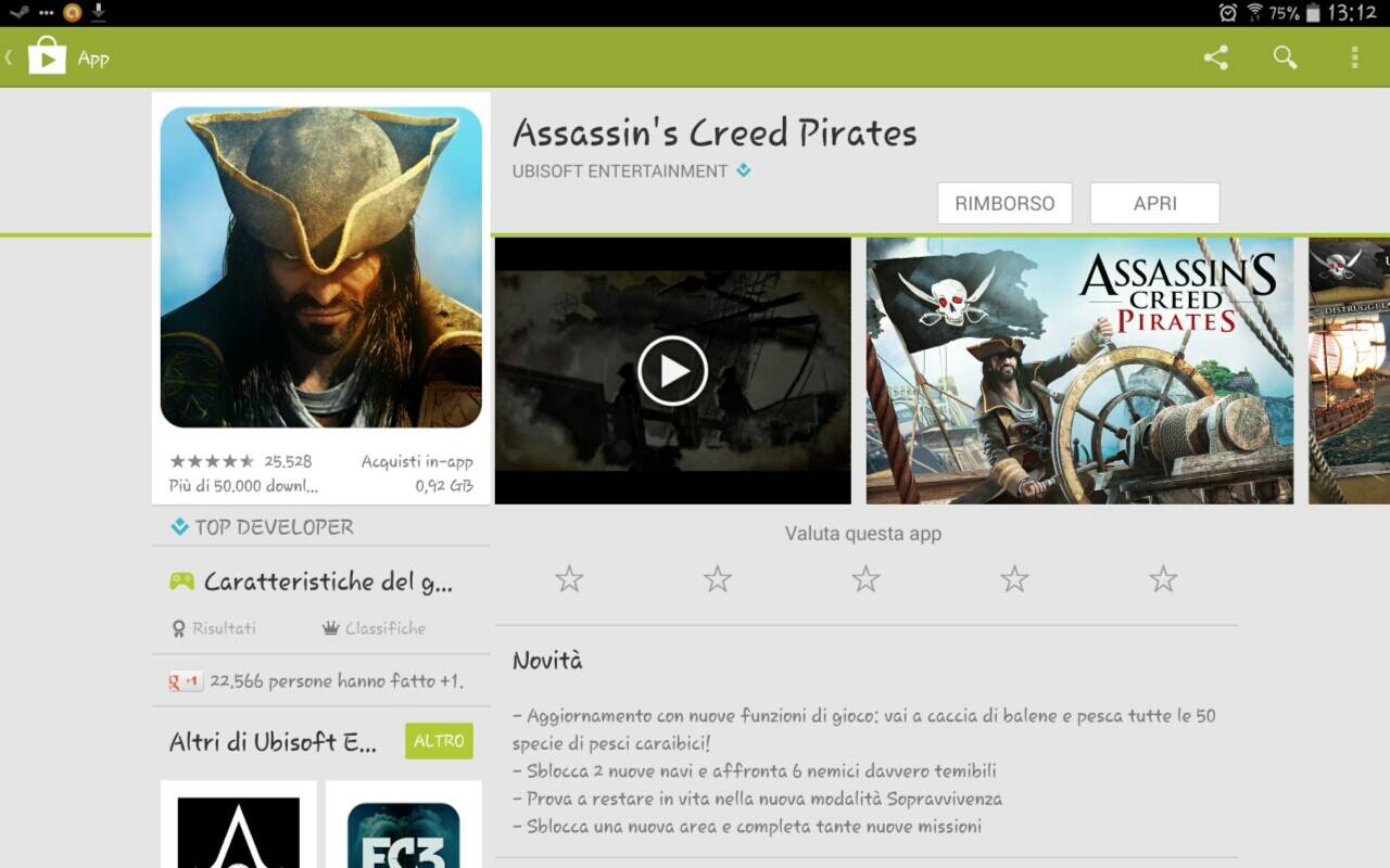 Il nostro amico Luca ci ha segnalato, tramite Quelli di batista70phone, la strepitosa offerta per Assassin's Creed Pirates, lo trovate a soli 0,10€ nel Play Store: https://play.google.com/store/apps/details?id=com.ubisoft.assassin.pirates&hl=it
