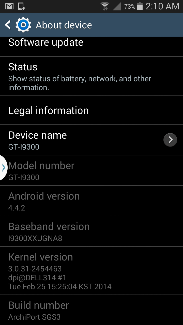 La ROM è in versione Alpha ed è basata sulla ROM 4.4.2 del Note 2 N7100 XXUFND3, ci sono alcuni bug e non funziona con i kernel custom per i9300,