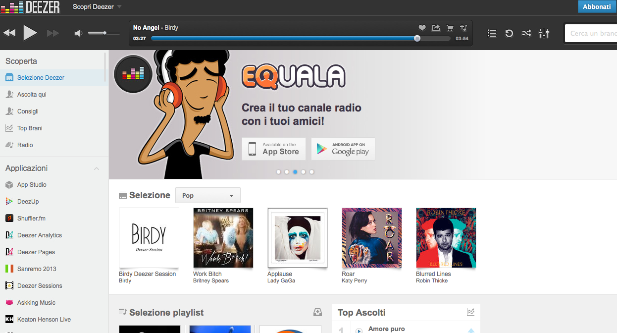 Notizia DEEZER con EQuala: social radio per tutti gli utenti! 26 settembre 2013 - Deezer ha siglato una nuova partnership worldwide con EQuala, la prima app di ‘social radio’ che di recente è stata lanciata con successo negli Stati Uniti. Lucio Lorenzo13 anni agoKeep Reading