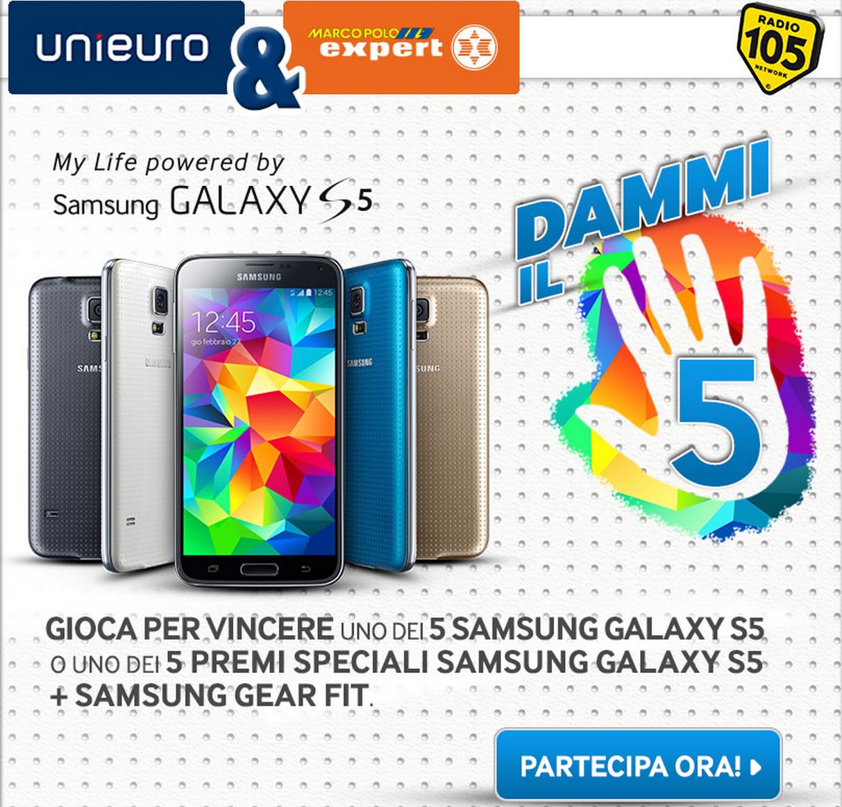 Se volete provare a vincere uno dei 5 Galaxy S5, ed altri premi speciali, messi in palio da Unieuro e Marco Polo Expert non dovete far altro che partecipare al